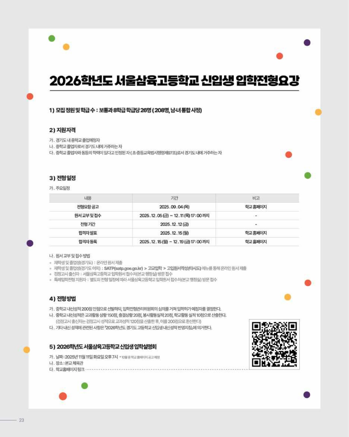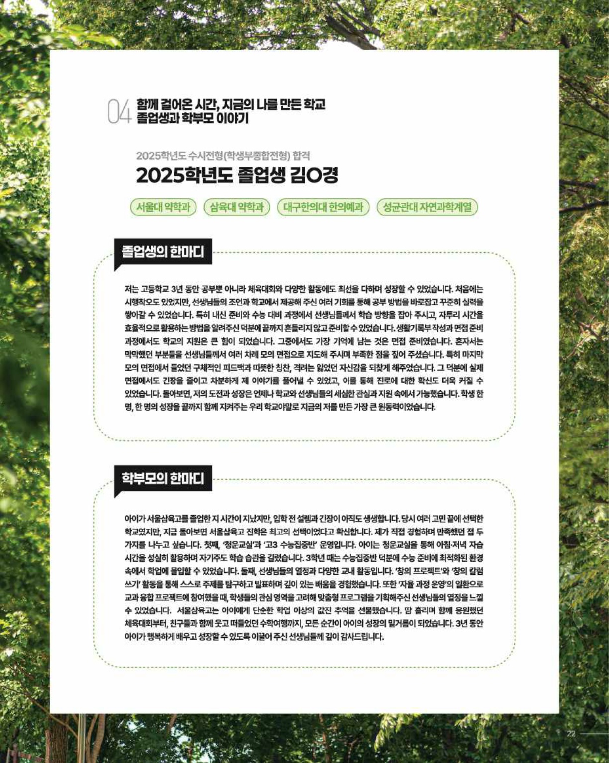 서울삼육고의 교육 철학과 학생 성장 프로그램을 담은 2026학년도 입학안내 브로슈어(PDF)를 공개합니다. 우리 학교의 배움 환경과 다양한 지원 내용을 쉽게 확인하실 수 있으니 입학을 준비하시는 학생·학부모님께 많은 도움이 되길 바랍니다.감사합니다. -서울삼육고 입학홍보부-